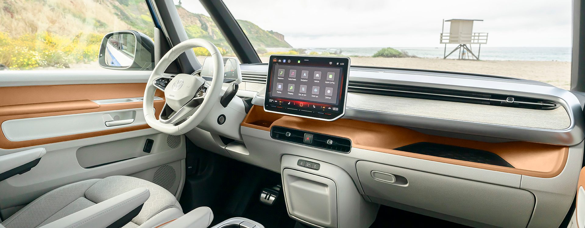 The ID. Buzz is very accommodating. It can be online if you want. Connected to your phone whenever you need. And cooled down hands-free with the ease of voice control.