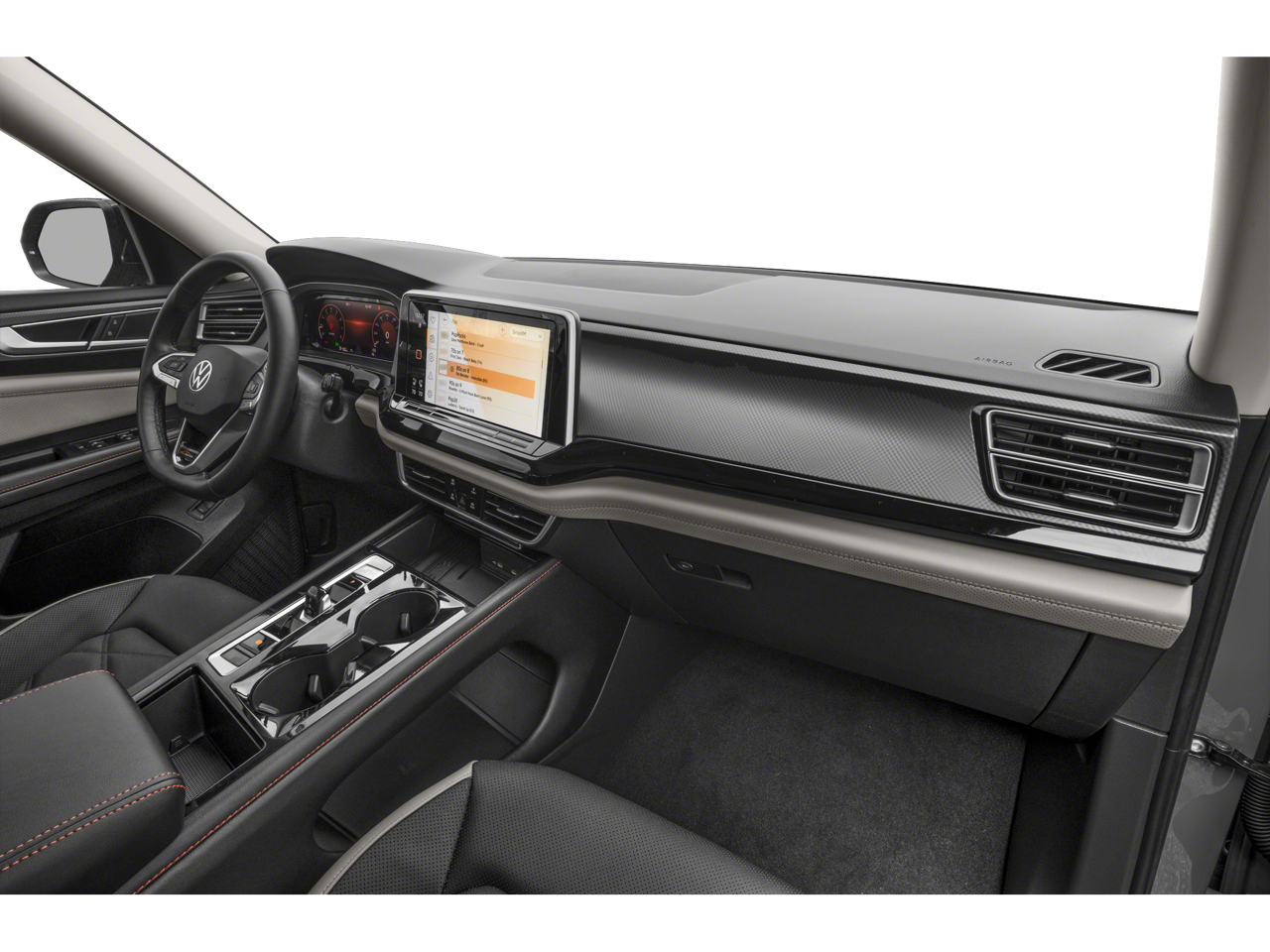 - MIB3 Composition Media -inc: 12" touchscreen multi-function center display, AM/FM/HD radio and WMA/MP3/FLAC player w/USB-C input, voice control, SiriusXM w/360L (w/3-month free trial subscription; 360L services require acceptance of SiriusXM terms), 6-speaker sound system, Bluetooth® connectivity (for compatible devices), capability for in-vehicle 4G LTE enabled Wi-Fi (cellular data plan required; includes limited trial), capability for connected vehicle services (capabilities for services vary; requires enrollment or subscription), App-Connect smartphone integration (w/Apple CarPlay, Android Auto and MirrorLink) via USB, wireless App-Connect smartphone integration (for compatible devices) w/multi-phone pairing capability and Qi wireless inductive charger up to 15W (for compatible mobile phones and accessories) in front row All connected vehicle services subject to terms and limitations. Some services, which include emergency assistance services, require a paid subscription. See dealer or vw.com/connected for details.