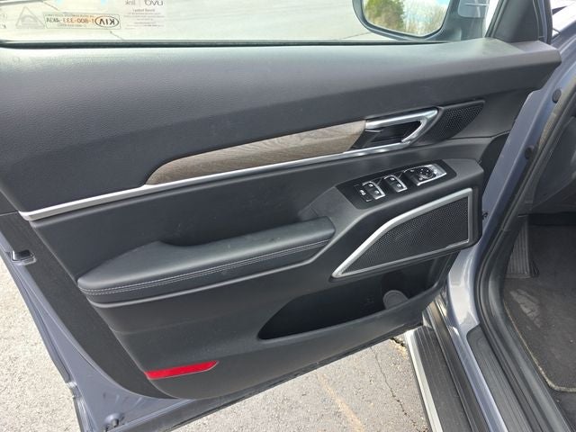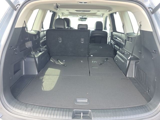 3.648 Axle Ratio, 3rd row seats: split-bench, 4-Wheel Disc Brakes, 6 Speakers, ABS brakes, Air Conditioning, Alloy wheels, AM/FM radio: SiriusXM, Apple CarPlay & Android Auto, Auto-dimming Rear-View mirror, Automatic temperature control, Brake assist, Bumpers: body-color, Cargo Net, Cargo Seatback Up Mat, Carpeted Floor Mats, Compass, Delay-off headlights, Driver door bin, Driver vanity mirror, Dual front impact airbags, Dual front side impact airbags, Electronic Stability Control, Emergency communication system: 911 Connect, Four wheel independent suspension, Front anti-roll bar, Front Bucket Seats, Front Center Armrest, Front dual zone A/C, Front reading lights, Fully automatic headlights, Heated & Ventilated Front Bucket Seats, Heated door mirrors, Heated front seats, Illuminated entry, Knee airbag, Leather Seat Trim, Leather Shift Knob, Leather steering wheel, Low tire pressure warning, Navigation System, Occupant sensing airbag, Outside temperature display, Overhead airbag, Overhead console, Panic alarm, Passenger door bin, Passenger vanity mirror, Power door mirrors, Power driver seat, Power Liftgate, Power moonroof, Power passenger seat, Power steering, Power windows, Radio data system, Radio: AM/FM/SIRIUS Display Audio, Rear air conditioning, Rear anti-roll bar, Rear audio controls, Rear reading lights, Rear seat center armrest, Rear window defroster, Rear window wiper, Reclining 3rd row seat, Remote keyless entry, Roof rack: rails only, Security system, Smart Key w/ Push Button and Remote Start, Speed control, Speed-sensing steering, Split folding rear seat, Spoiler, Steering wheel mounted audio controls, Tachometer, Telescoping steering wheel, Tilt steering wheel, Traction control, Trip computer, Turn signal indicator mirrors, Variably intermittent wipers, Ventilated front seats, and Wheels: 7.5 x 18 Machined Finish Alloy.