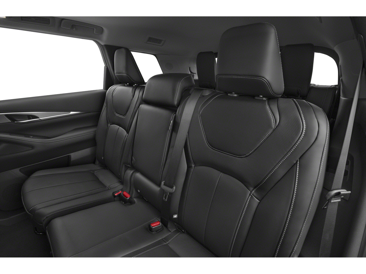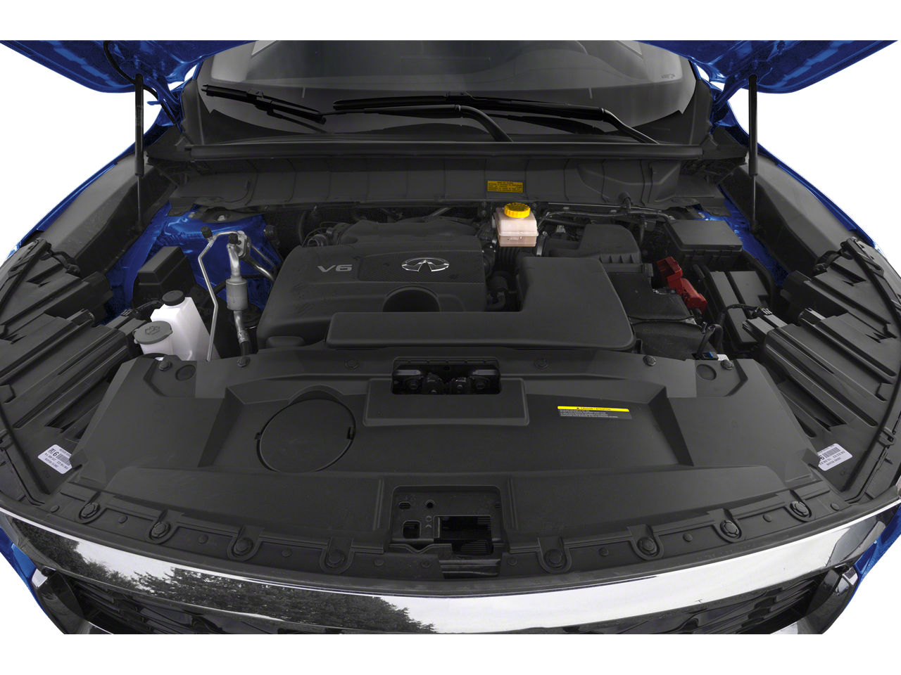 Cargo Package, 3rd row seats: bench, 4-Wheel Disc Brakes, ABS brakes, Air Conditioning, Alloy wheels, AM/FM radio: SiriusXM, Auto High-beam Headlights, Auto tilt-away steering wheel, Auto-dimming Rear-View mirror, Automatic temperature control, Brake assist, Delay-off headlights, Driver door bin, Driver vanity mirror, Dual front impact airbags, Dual front side impact airbags, Electronic Stability Control, Exterior Parking Camera Rear, Four wheel independent suspension, Front anti-roll bar, Front Bucket Seats, Front dual zone A/C, Front reading lights, Fully automatic headlights, Garage door transmitter: HomeLink, Heated door mirrors, Heated front seats, Heated rear seats, Heated steering wheel, Illuminated entry, Knee airbag, Leather Shift Knob, Leather steering wheel, Leather-Appointed Seating Surfaces, Low tire pressure warning, Memory seat, Navigation system: INFINITI InTouch Navigation, Occupant sensing airbag, Outside temperature display, Overhead airbag, Overhead console, Panic alarm, Passenger door bin, Passenger vanity mirror, Power door mirrors, Power driver seat, Power Liftgate, Power moonroof, Power passenger seat, Power steering, Power windows, Radio data system, Rain sensing wipers, Rear air conditioning, Rear anti-roll bar, Rear reading lights, Rear side impact airbag, Rear window defroster, Rear window wiper, Reclining 3rd row seat, Remote keyless entry, Security system, Speed control, Speed-sensing steering, Speed-Sensitive Wipers, Split folding rear seat, Spoiler, Steering wheel memory, Steering wheel mounted audio controls, Tachometer, Telescoping steering wheel, Tilt steering wheel, Traction control, Trip computer, Turn signal indicator mirrors, and Variably intermittent wipers.